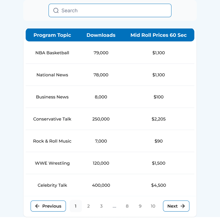 DX Media Direct can help connect you to the right podcast audience. Here are some examples of rates and download statistics. There are literally hundreds of programs available.
